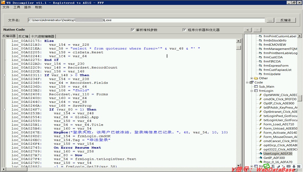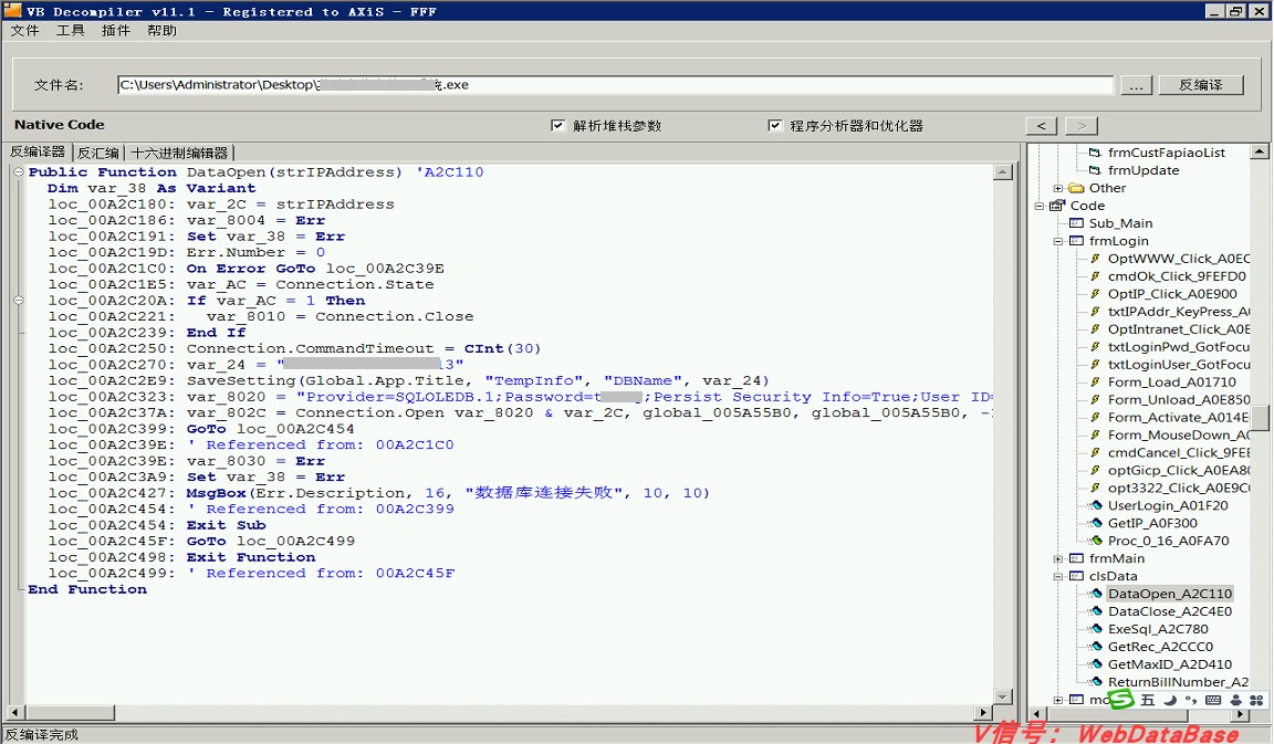 今天从一个讨论组中下载了一个软件,是一个公司的管理系统软件,但问题是这个软件并不仅仅只供公司局域网使用,还允许从外网中使用(好处是在家也可以办公等)。但是用流行的话说“世界就是个草台班子”,习惯了局域网程序的开发一旦允许从外网使用时,很多安全事项就会被忽视。比如这个公司的管理系统软件,我使用反编译的程序反编译后可以得到数据库IP地址、数据库名以及SQL口令账号,非常恐怖。